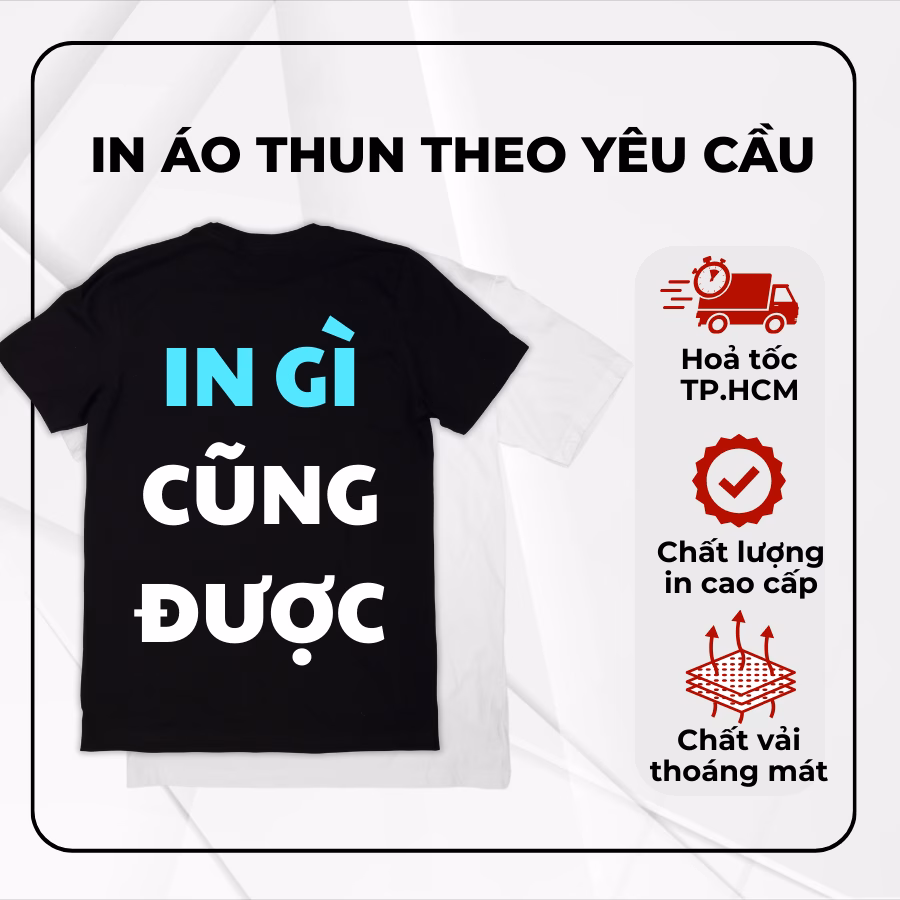 - Phù hợp với nhiều dịp: Áo thun in theo yêu cầu có thể được mặc trong nhiều dịp khác nhau, từ đi chơi, đi làm đến tham gia sự kiện.