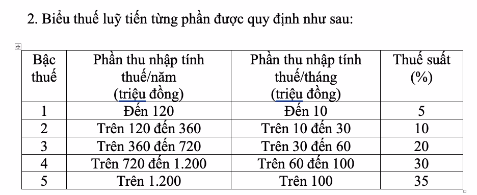 - Bậc 5 (mức cao nhất): Thuế suất duy trì 35%.