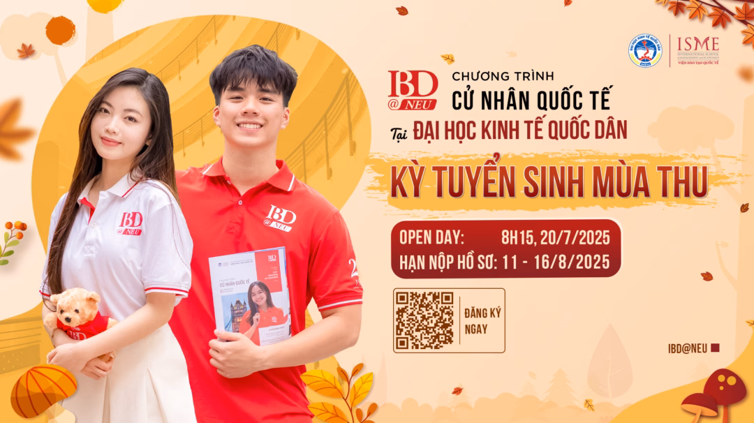 Ngày hội Giới thiệu thông tin tuyển sinh chương trình Cử nhân Quốc tế IBD@NEU – IBD OPEN DAY sẽ diễn ra vào sáng Chủ nhật, ngày 20/7/2025 tại Hội trường A2 – Trường Đại học Kinh tế Quốc dân, 207 Giải Phóng, Hà Nội. Sự kiện này mang chủ đề ‘Đại học – Khám phá và Trải nghiệm’, hứa hẹn mang đến cho học sinh và phụ huynh những trải nghiệm hấp dẫn và thông tin quý báu về chương trình Cử nhân Quốc tế IBD@NEU.