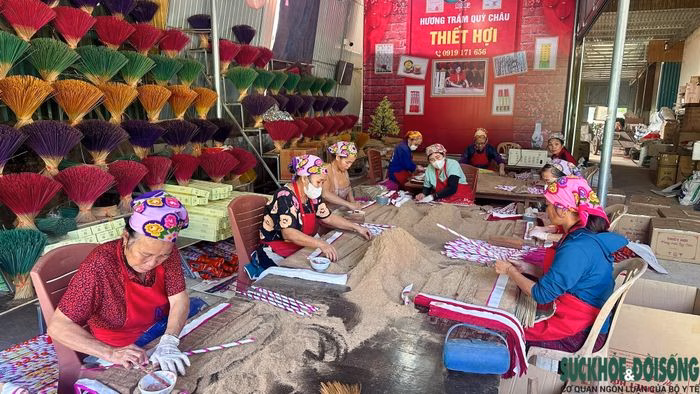 Bà Hà Thị Năm, 70 tuổi, đã làm việc ở xưởng hơn 20 năm, có thể quấn gần 2.000 que hương mỗi ngày và nhận tiền công theo sản phẩm. “Que hương khi quấn lỏng sẽ rơi bột, quấn chặt quá lại khó cháy. Nghề làm hương nhìn có vẻ đơn giản nhưng thực tế đòi hỏi sự tỉ mỉ và sức lực,” bà Năm nói.
