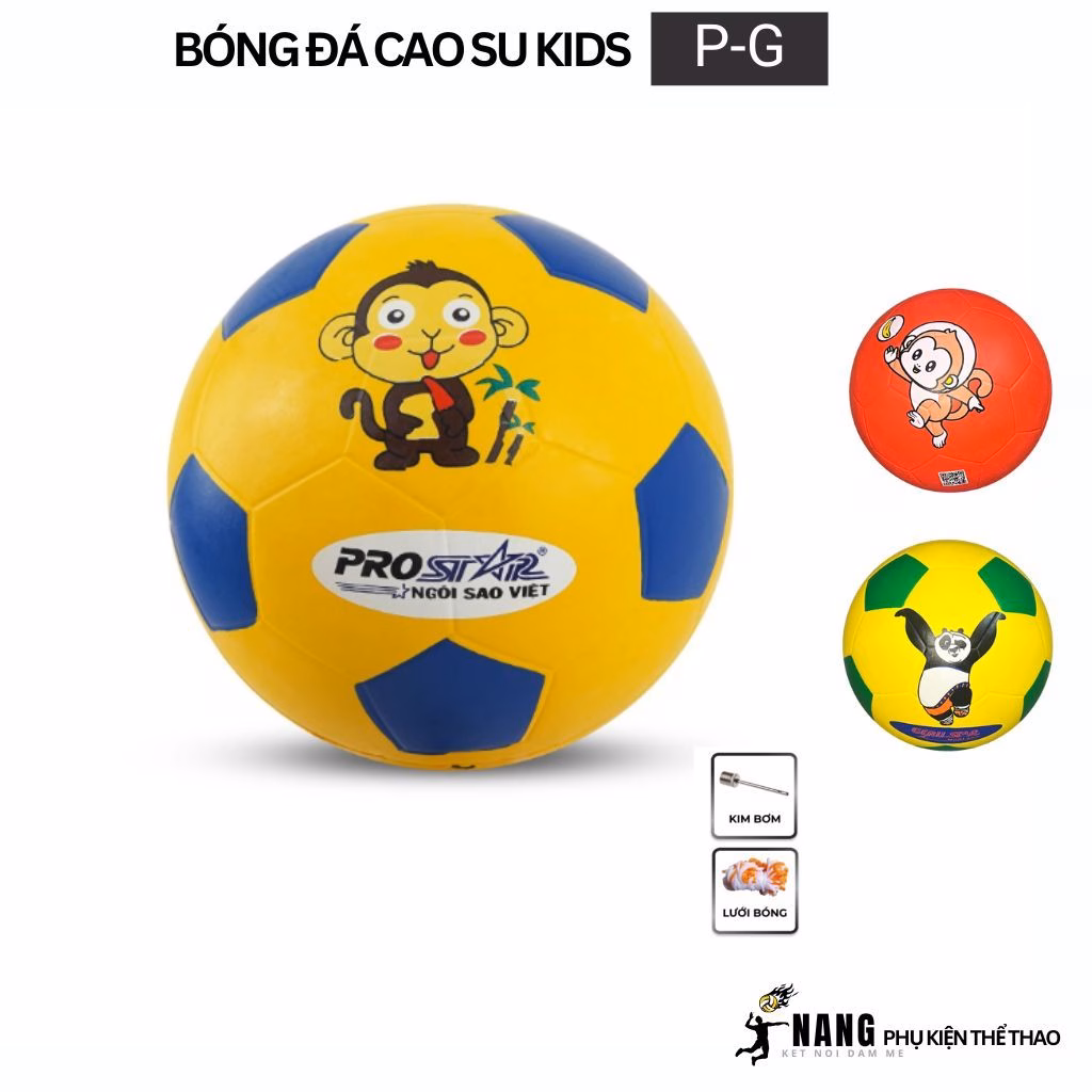 Bóng đá trẻ em Prostart cao su mềm là một lựa chọn tốt, với chất liệu cao su mềm và thiết kế an toàn. Quả bóng này cũng đi kèm với kim bơm và lưới bóng, giúp phụ huynh dễ dàng bảo quản và vệ sinh.